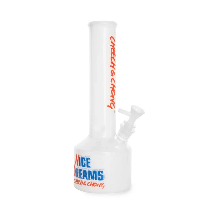 Unlock the key to the universe with the 12" Nice Dreams Canteen Base Water Pipe from Cheech & Chong® Glass. This water pipe is designed for the finest quality happy herbs and includes a built-in ice catcher with licensed decal artwork.