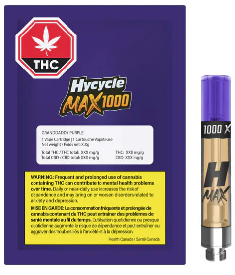 Granddaddy Purple by Hycycle MAX 1000 packs 1.1g of distillate and 1000mg of total THC at 90%+ potency. This iconic indica-dominant cultivar built its name on loud grape and berry flavour with earthy undertones. Made with high-purity distillate, cannabis-derived terpenes and botanical terpenes, it stays true to the classic strain. Powered by premium hardware, every pull hits smooth, consistent, and full of flavor.