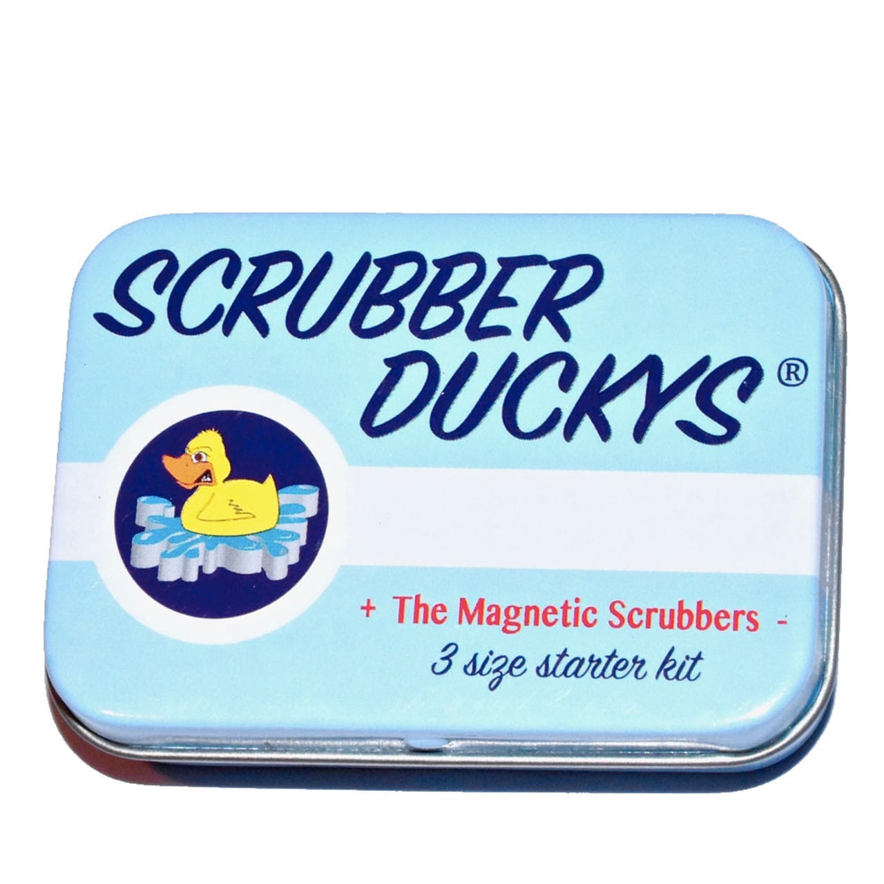 The NEW Scrubber Duckys 5.0 kit includes 5 magnetic scrubbers and 1 one heavy-duty, rubber-coated, magnetic outer handle. Scrubber Duckys are Magnetic Water Pipe Scrubbers! Drop a ducky into your water pipe and finally be able to reach those grimy spots you never could before. Scrubber Duckys are now washable and feature double-strength magnets! Each Ducky can also be cut to size to fit into smaller water pipes. For use with water-pipes, wine decanters, vases, baby bottles and more. To use opposite scrubbing sides, simply flip the outer magnetic handle. Watch your Duckys do backflips!