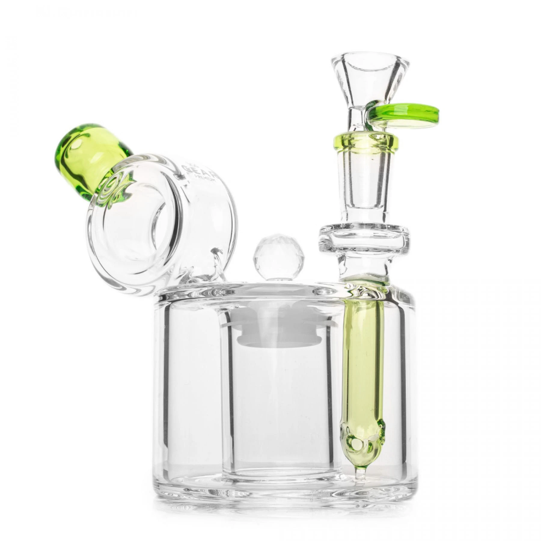 Keep your favourite flower close with the Cache Money Bubbler from GEAR Premium®. The built-in storage jar allows you to stash your herb in the bubbler itself, and the rubber seal ensures it stays fresh for your next sesh. Enjoy a comfortable smoke with an angled mouthpiece featuring an elegantly designed splashguard and achieve the pinnacle of convenience with this all-in-one borosilicate bubbler.