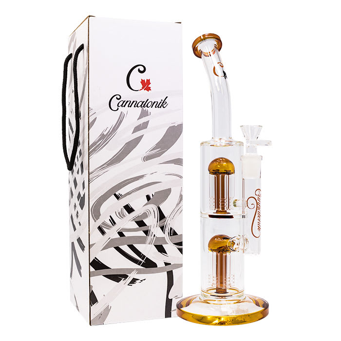 This marvelous Bong is made of Premium Borosilicate Glass by Cannatonik. 14 Inches Double Percolator Glass Bong With 14mm Joint Size. This Cannatonik Bong is artisan hand-crafted. Multiple Colours Available