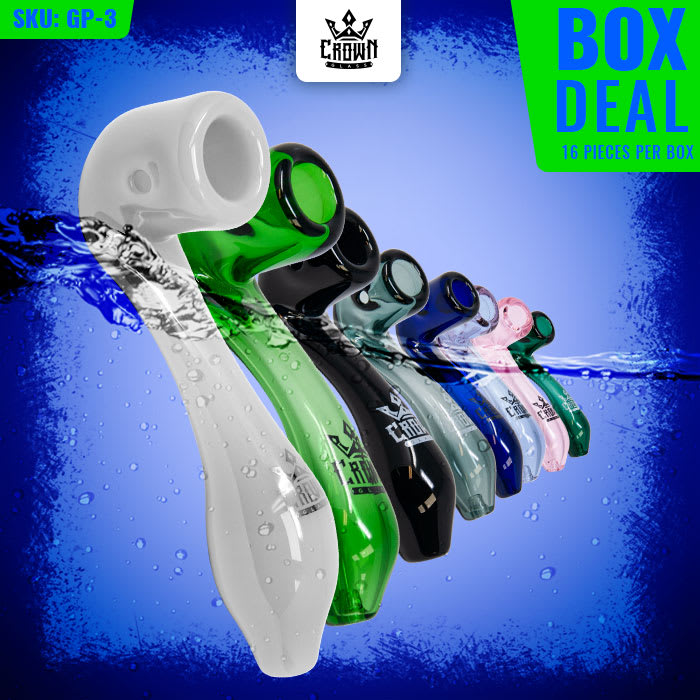 Our 4 inch Crown Glass Pipes are a tremendous hit amongst our customers with the Sherlock Holmes collection! These beautiful Sherlock pipes come in mysterious and vibrant colours that draw a person's eye from a mile away.