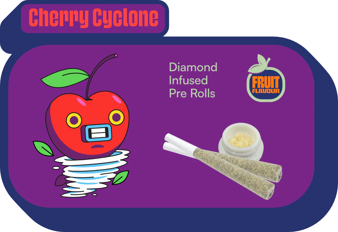 Cherry Cyclone Diamond Infused Pre-Rolls offer an unparalleled smoking experience, combining premium flower with high-potency diamonds. Each pre-roll delivers a burst of sweet, cherry flavour and a powerful, long-lasting high. Perfect for those seeking a smooth, flavorful smoke with an extra kick of potency