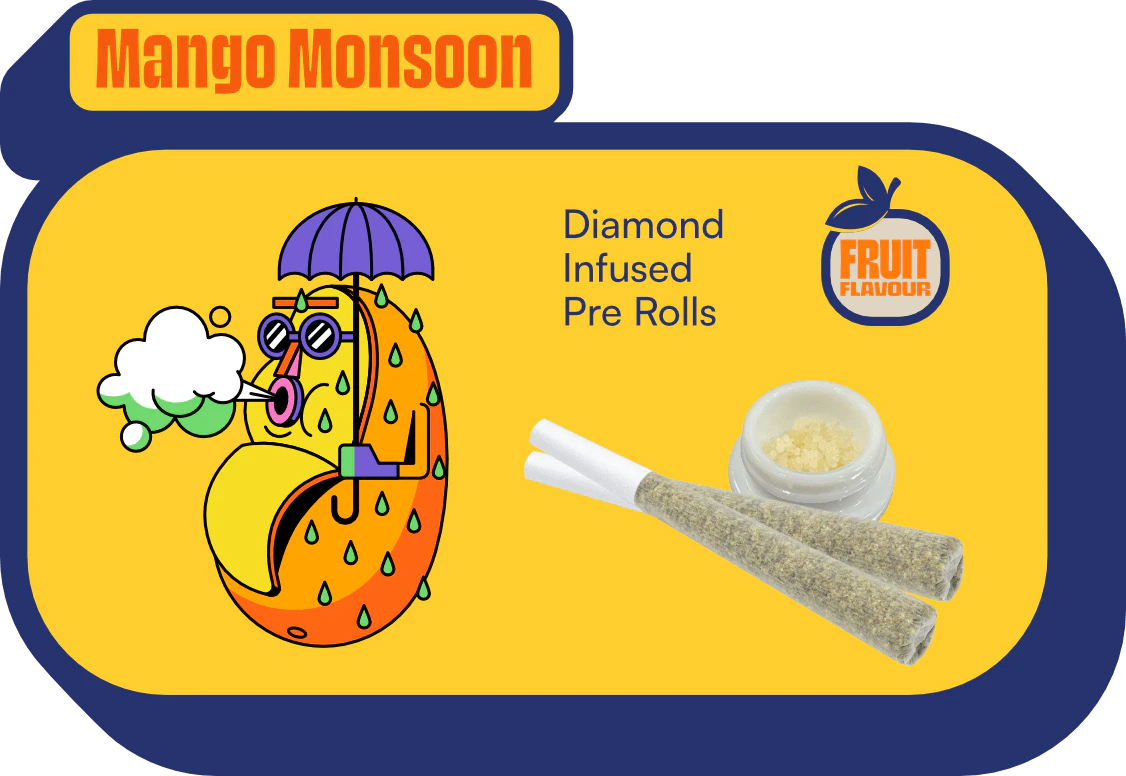 Indulge in the tropical allure of Mango Monsoon Diamond Infused Pre Rolls, enhanced with premium botanical terpenes. These artisanal pre-rolls blend top-shelf flower with a touch of diamond-infused magic, delivering a smooth, fruity flavor profile. Elevate your experience with a potent, elevated high that transports you to a mango-filled oasis.